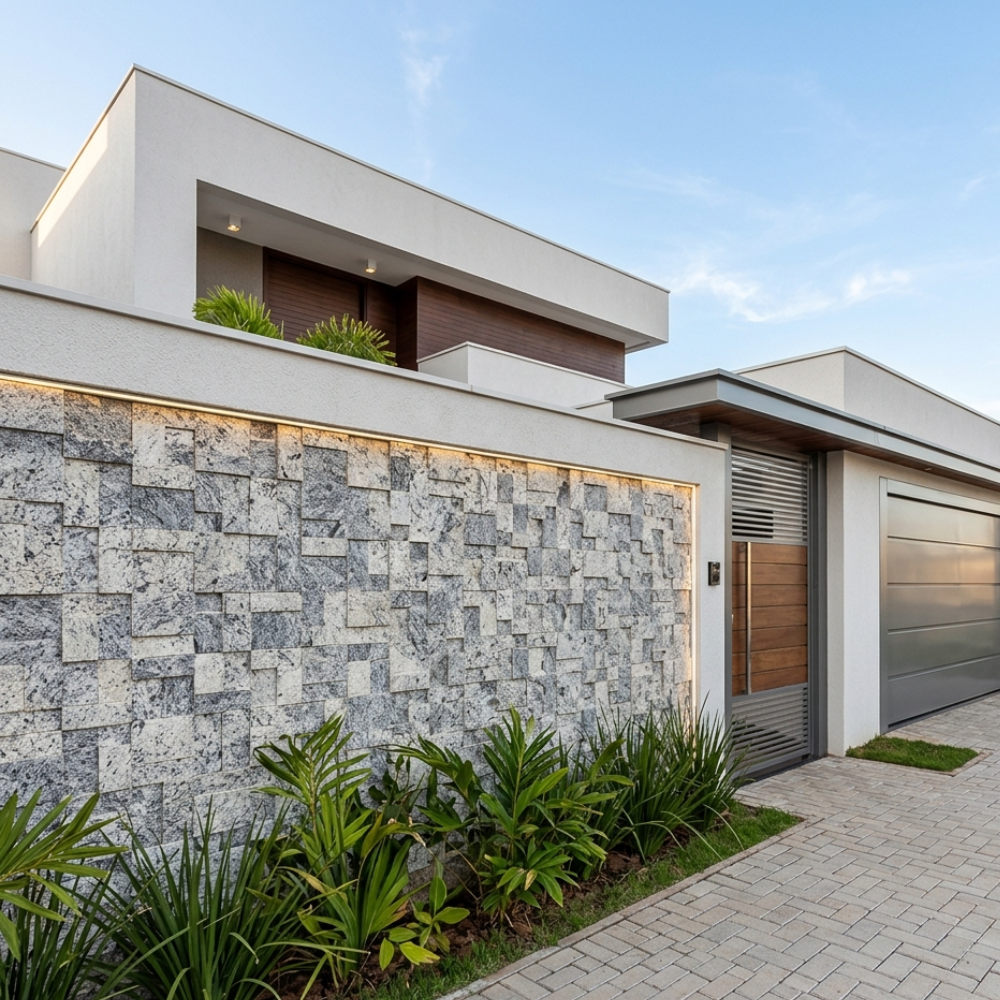 Flexibilidade Total: A tela permite o revestimento de superfícies curvas e colunas, adaptando-se a qualquer geometria do projeto.