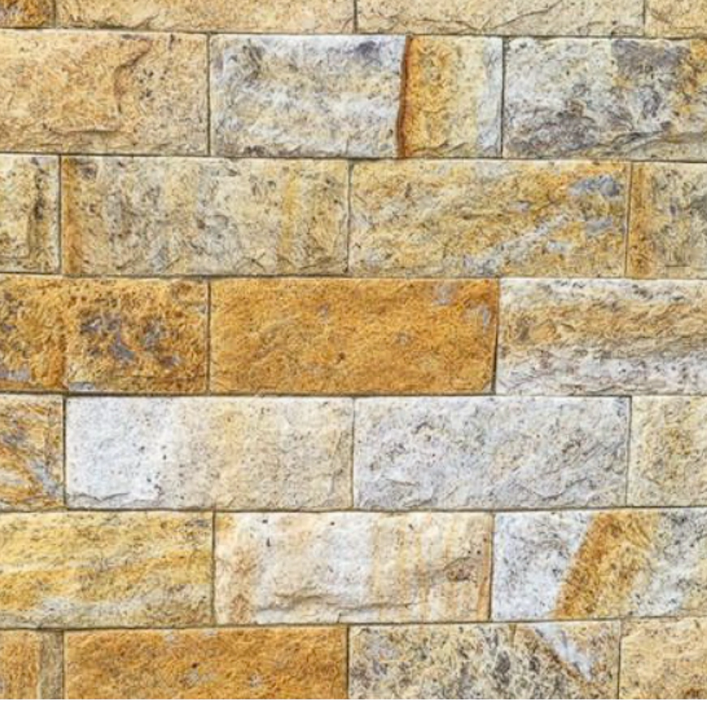 Revestimento de Muros e Fachadas: Destaca a volumetria da casa com uma textura rica e dourada.