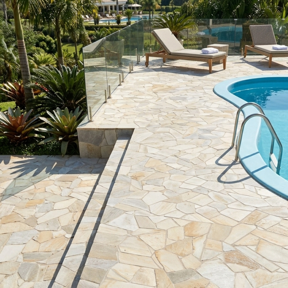 • Segurança e Alta Resistência: Sua textura naturalmente áspera garante aderência total em áreas molhadas, suportando tráfego intenso de pedestres e veículos por décadas.