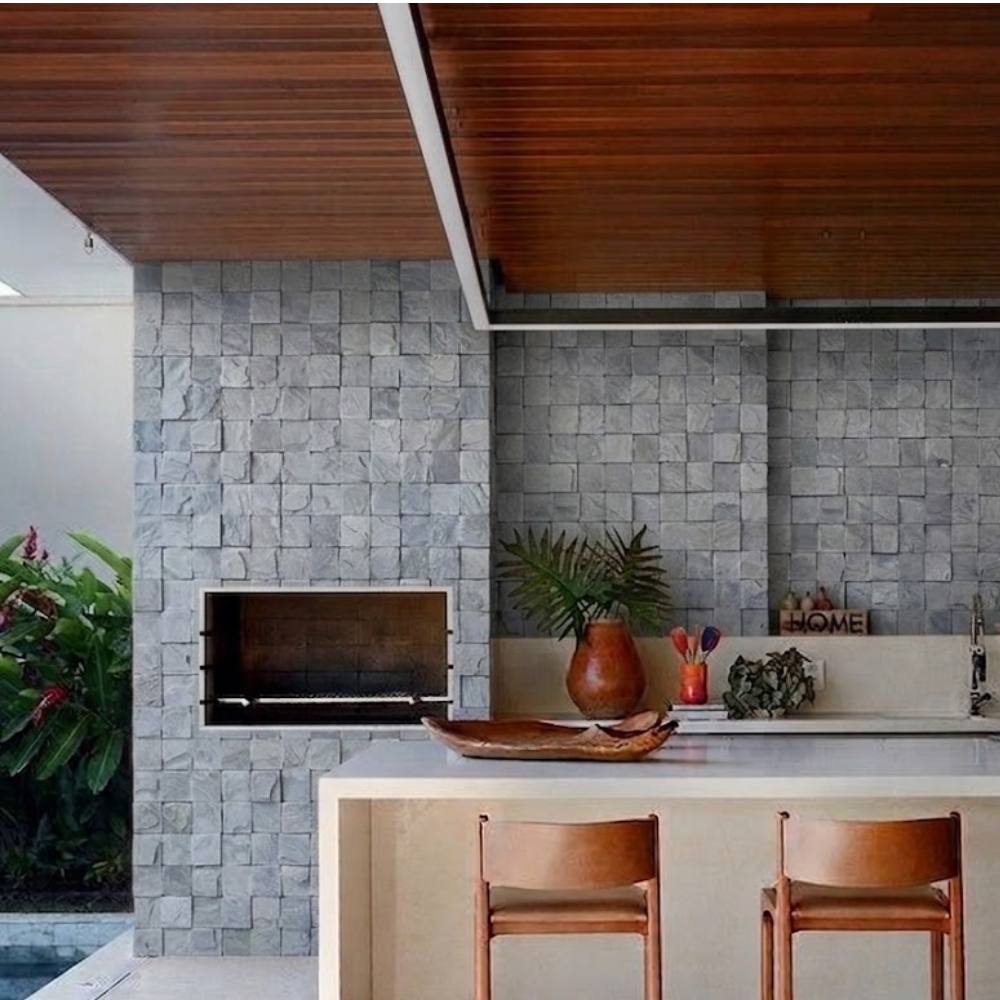 Versatilidade Total: Pode ser utilizada tanto como revestimento decorativo em paredes quanto como pavimentação resistente em pisos externos e caminhos de jardim.