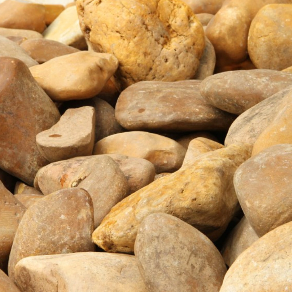 • Material: Seixo Natural de Rio (Rocha Sedimentar/Metamórfica rolada).