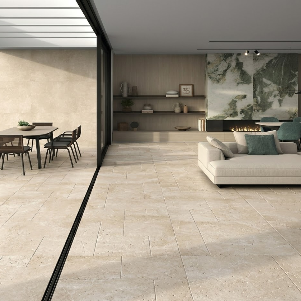 Versatilidade Nobre: Base neutra e iluminada que harmoniza perfeitamente com móveis de madeira, metais nobres e arquitetura mediterrânea.